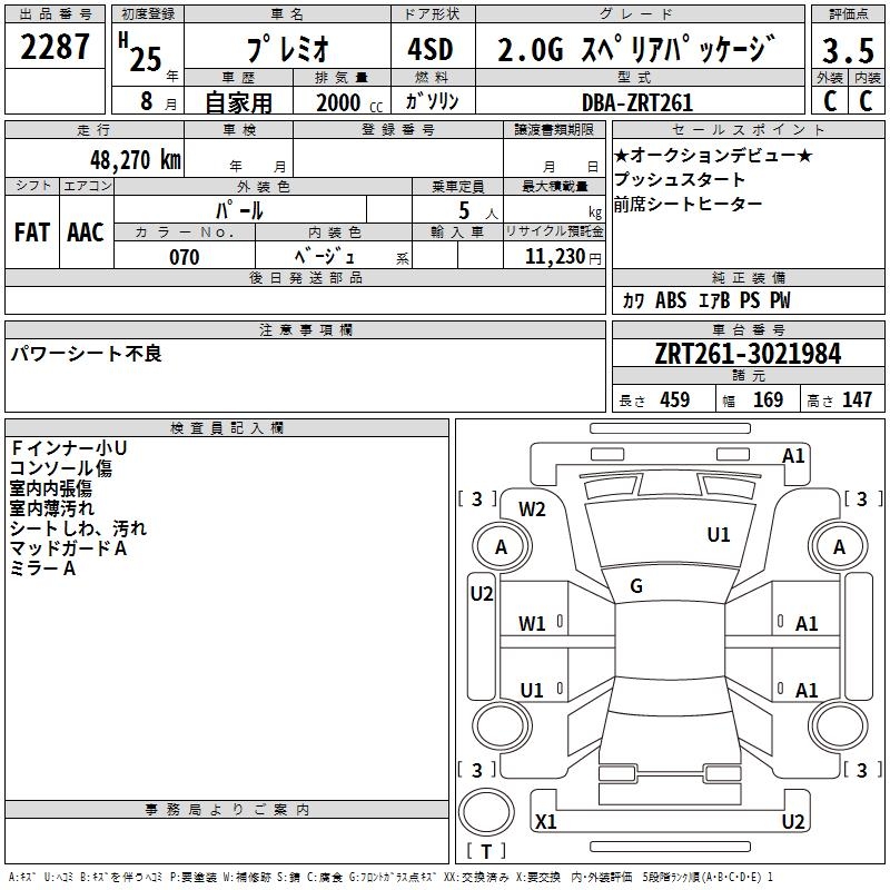 TOYOTA PREMIO - лот 2287