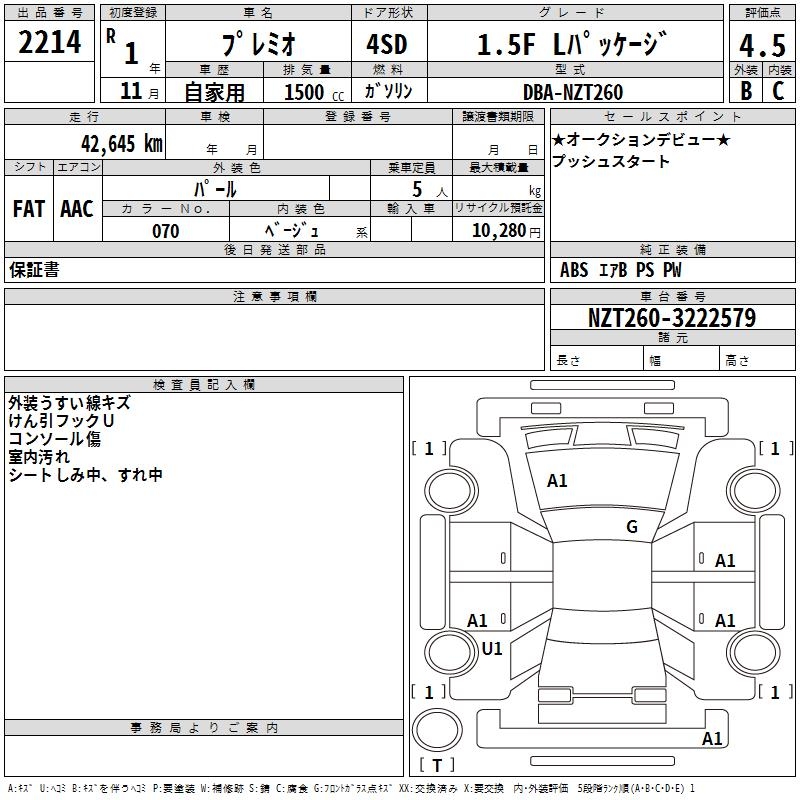 TOYOTA PREMIO - лот 2214