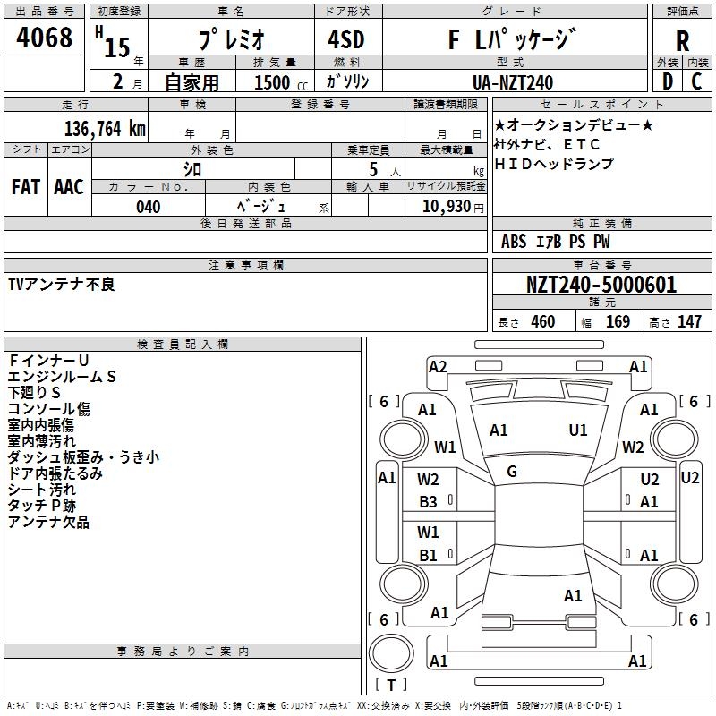 TOYOTA PREMIO - лот 4068