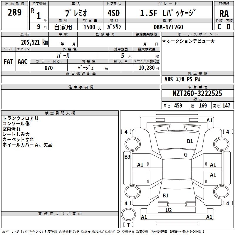 TOYOTA PREMIO - лот 289