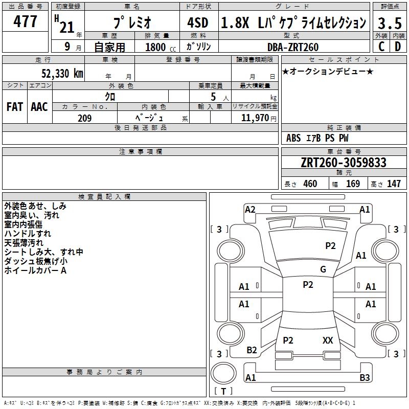 TOYOTA PREMIO - лот 477