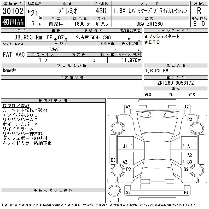 TOYOTA PREMIO - лот 30102