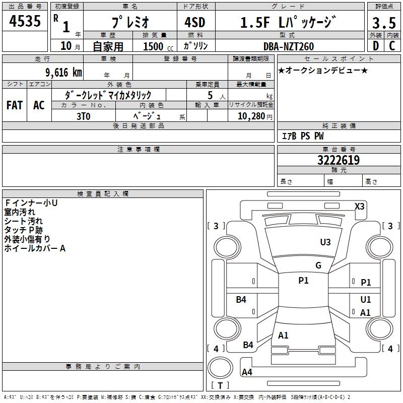TOYOTA PREMIO - лот 4535