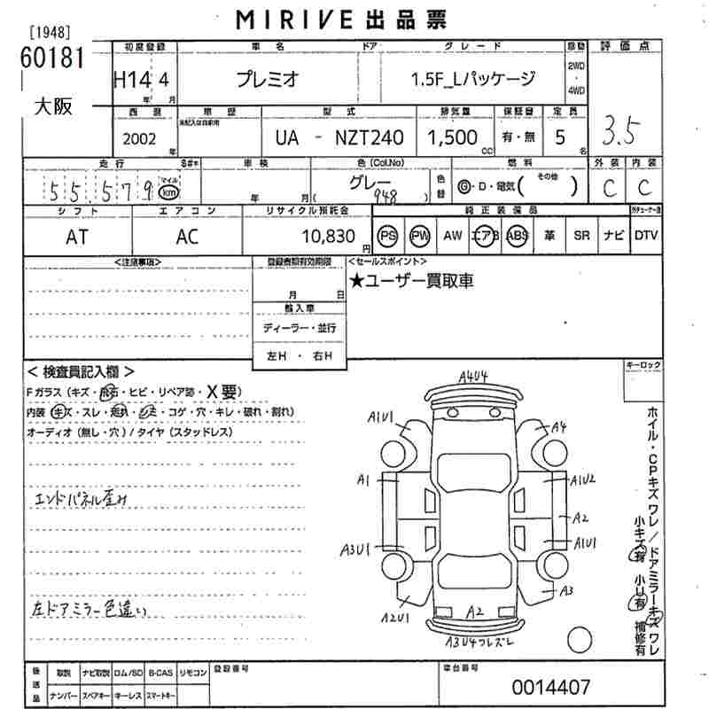 TOYOTA PREMIO - лот 60181