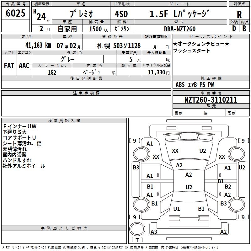 TOYOTA PREMIO - лот 6025