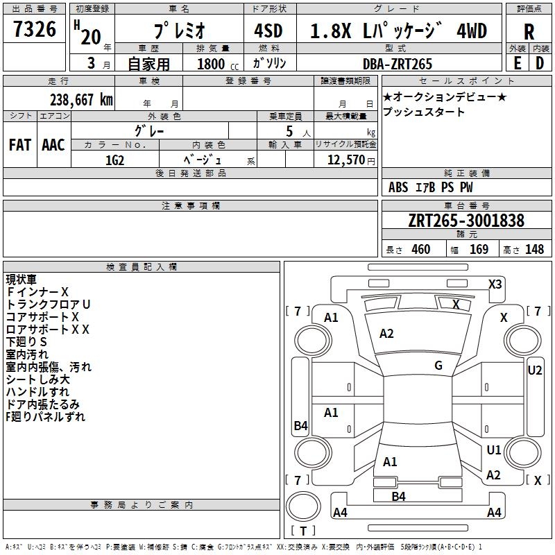TOYOTA PREMIO - лот 7326