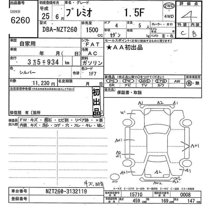 TOYOTA PREMIO - лот 6260