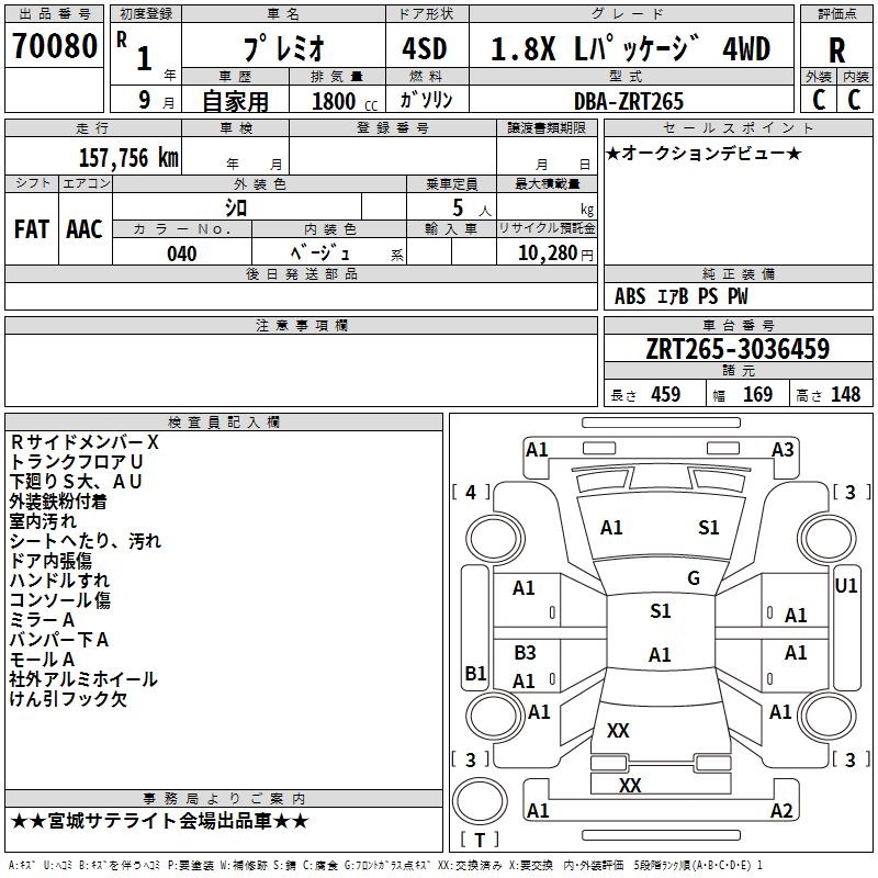 TOYOTA PREMIO - лот 70080