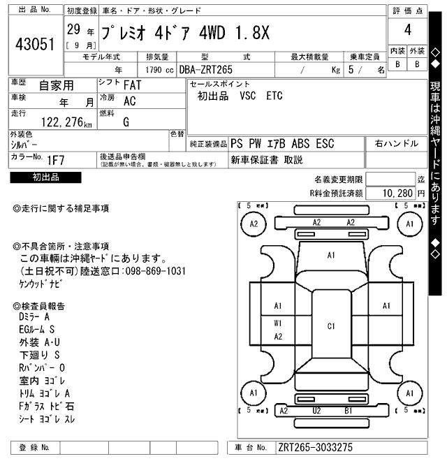 TOYOTA PREMIO - лот 43051