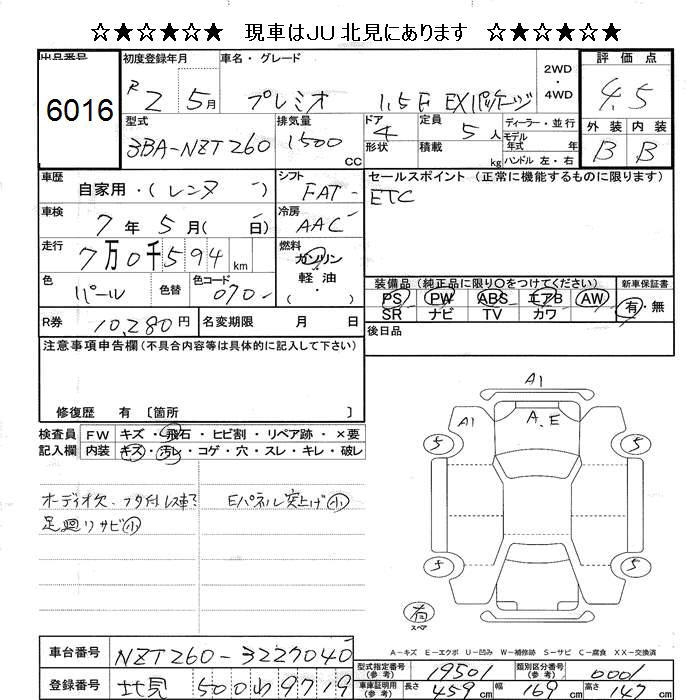 TOYOTA PREMIO - лот 6016