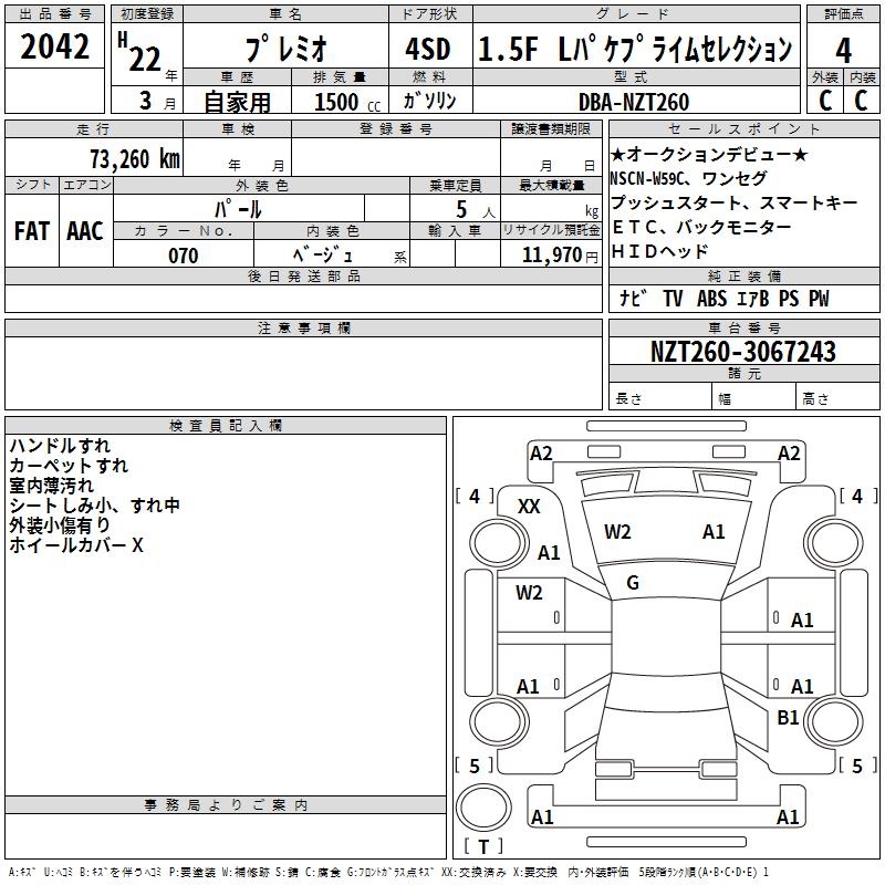 TOYOTA PREMIO - лот 2042