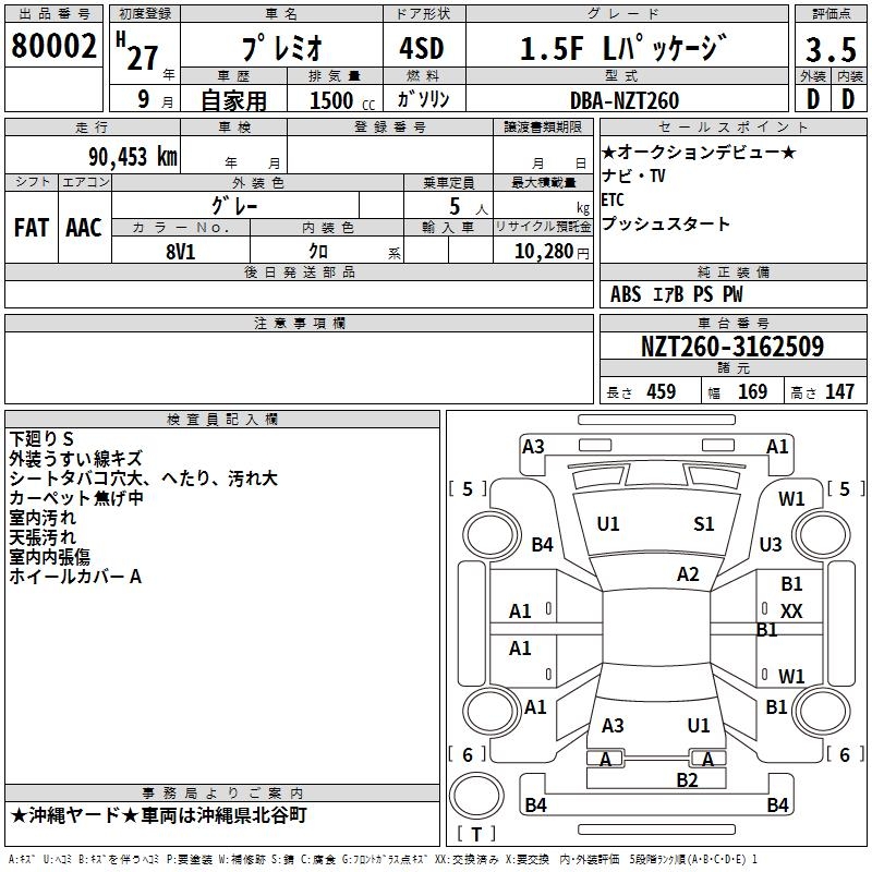 TOYOTA PREMIO - лот 80002