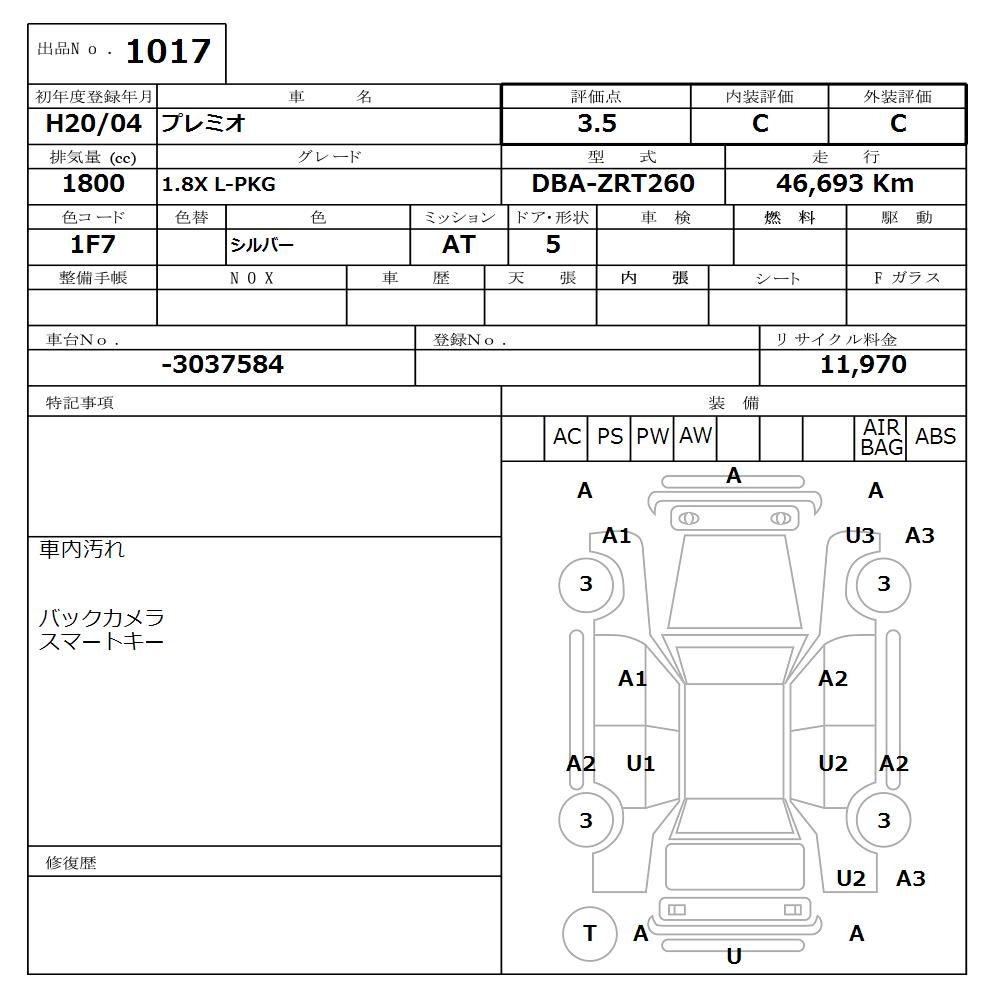 TOYOTA PREMIO - лот 1017
