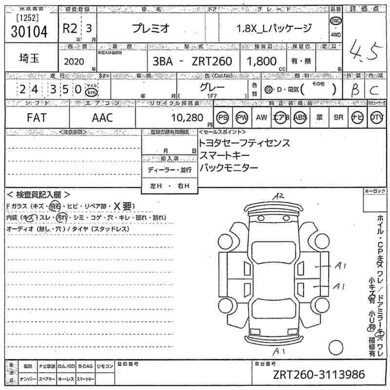 TOYOTA PREMIO - лот 30104