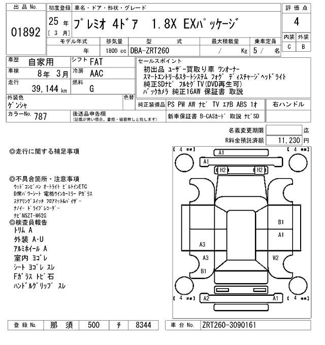 TOYOTA PREMIO - лот 1892