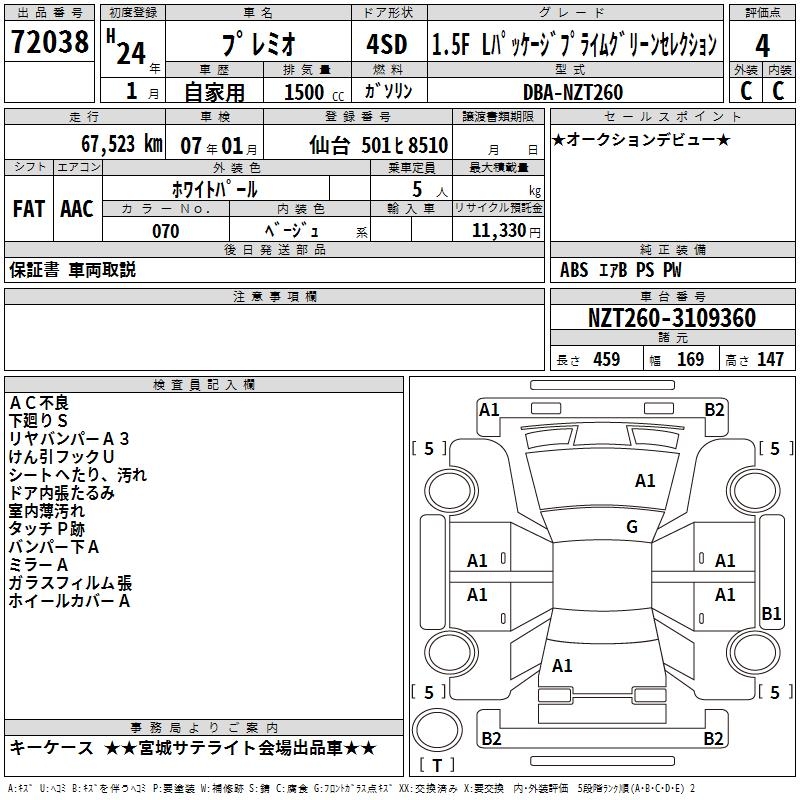 TOYOTA PREMIO - лот 72038