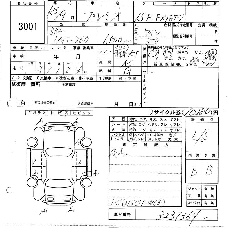 TOYOTA PREMIO - лот 3001