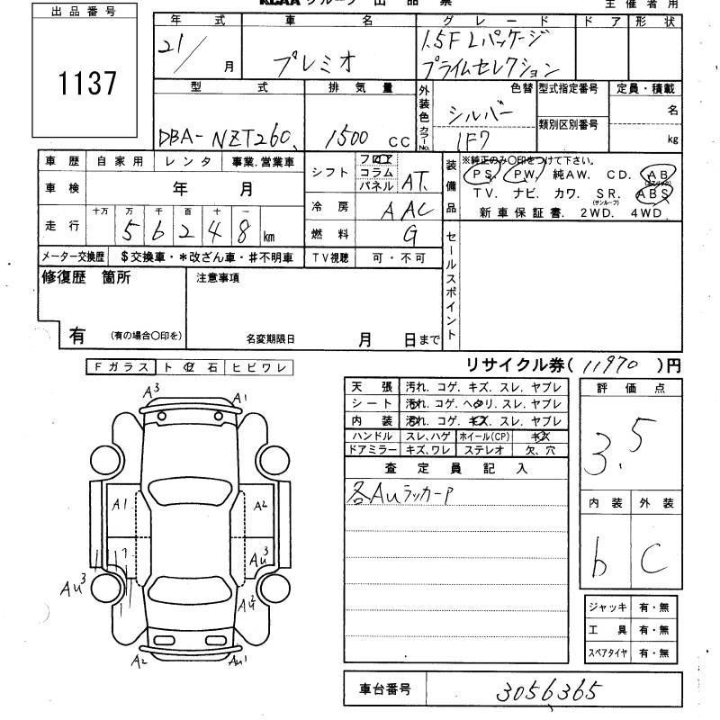 TOYOTA PREMIO - лот 1137