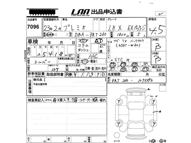 TOYOTA PREMIO - лот 7096