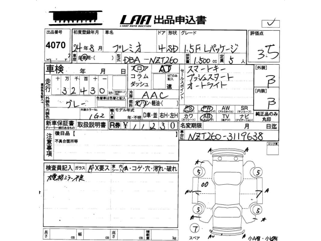 TOYOTA PREMIO - лот 4070