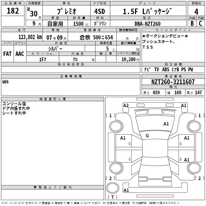 TOYOTA PREMIO - лот 182