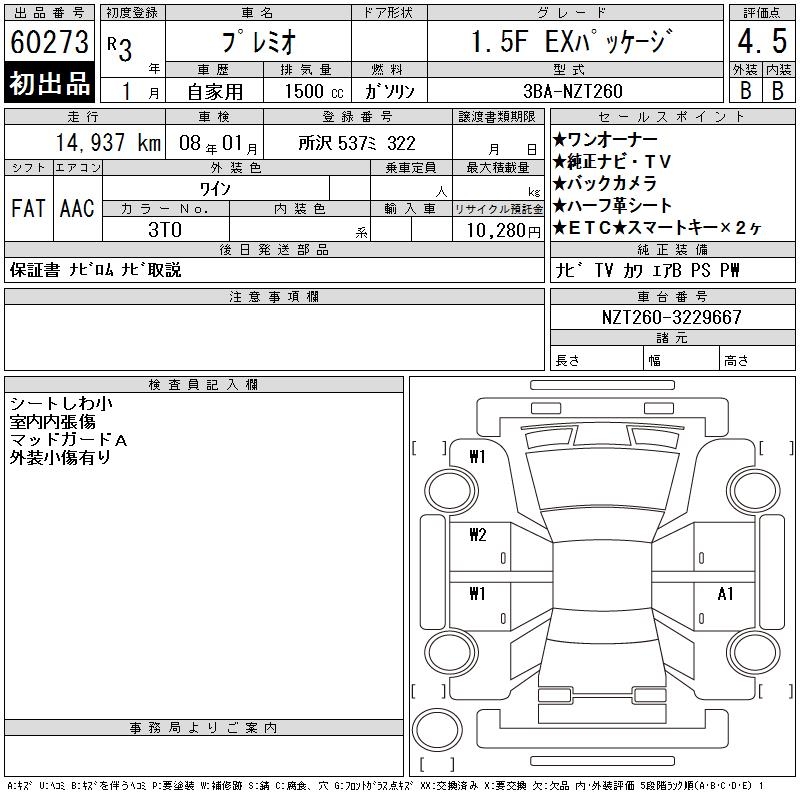 TOYOTA PREMIO - лот 60273