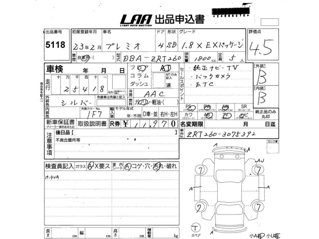 TOYOTA PREMIO - лот 5118