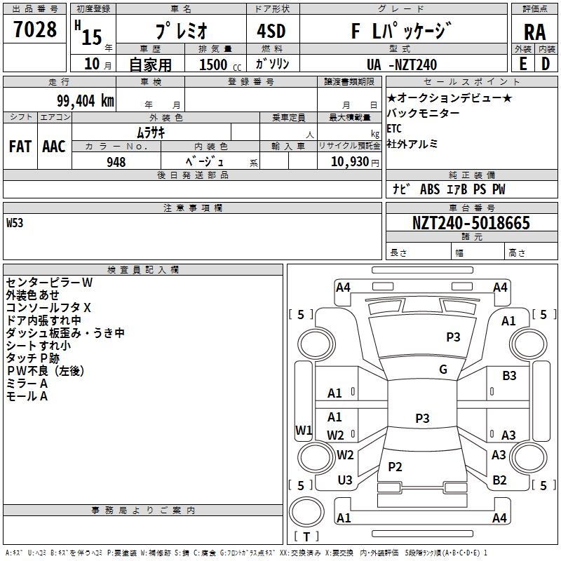 TOYOTA PREMIO - лот 7028