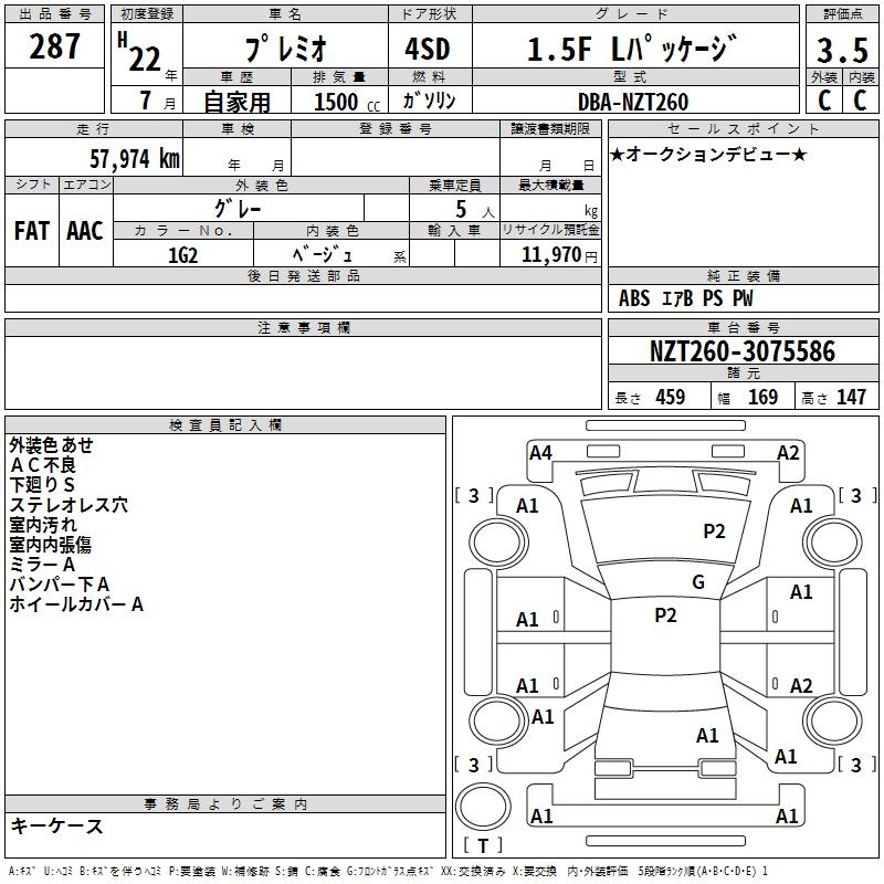TOYOTA PREMIO - лот 287