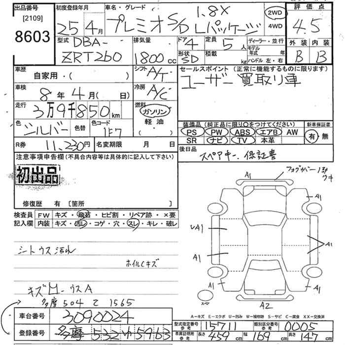 TOYOTA PREMIO - лот 8603