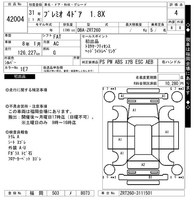 TOYOTA PREMIO - лот 42004
