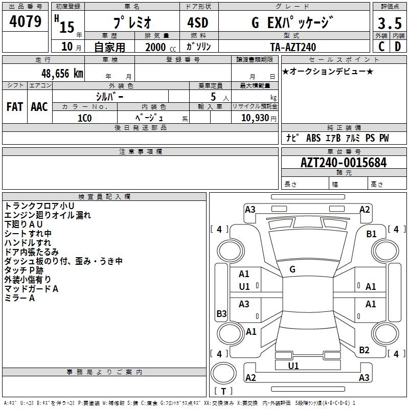 TOYOTA PREMIO - лот 4079