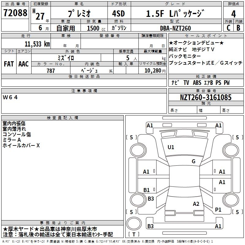 TOYOTA PREMIO - лот 72088
