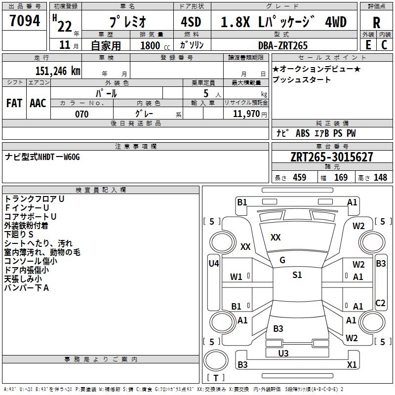 TOYOTA PREMIO - лот 7094