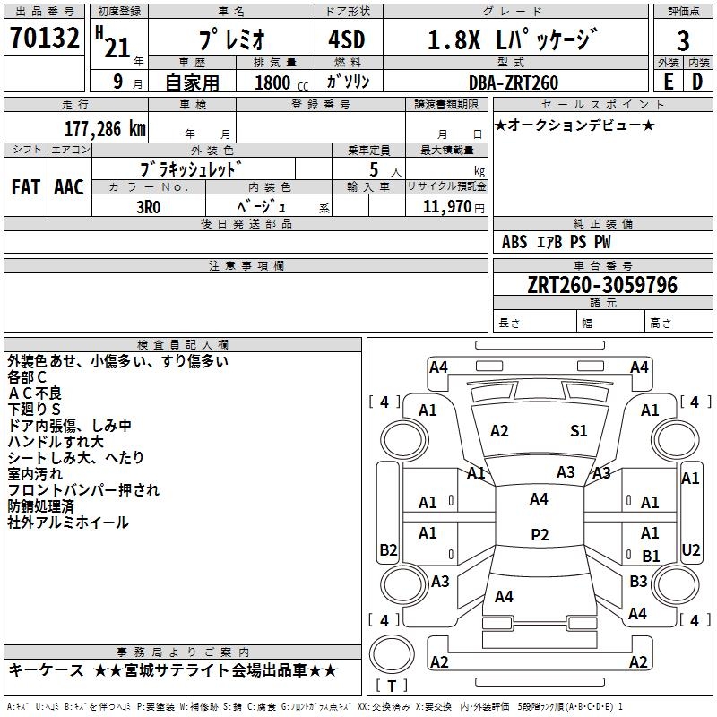 TOYOTA PREMIO - лот 70132