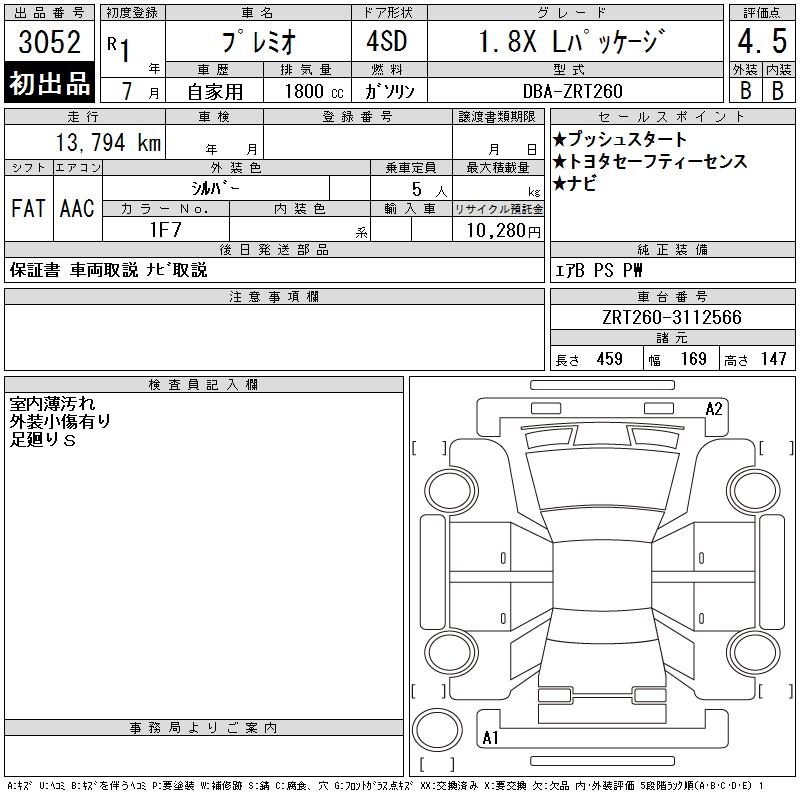 TOYOTA PREMIO - лот 3052