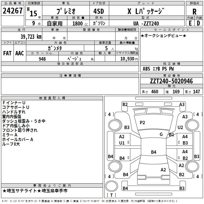TOYOTA PREMIO - лот 24267