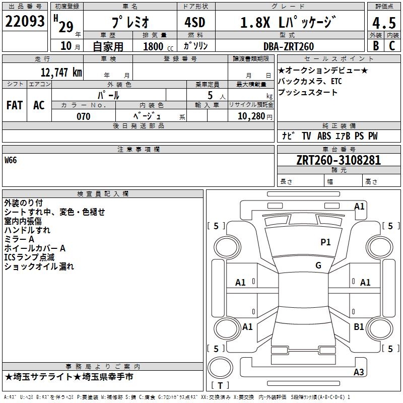 TOYOTA PREMIO - лот 22093