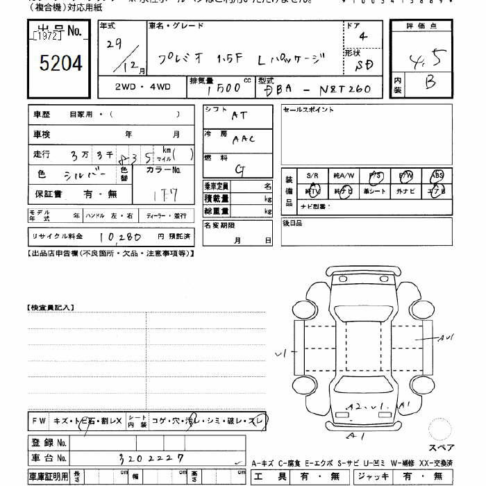TOYOTA PREMIO - лот 5204
