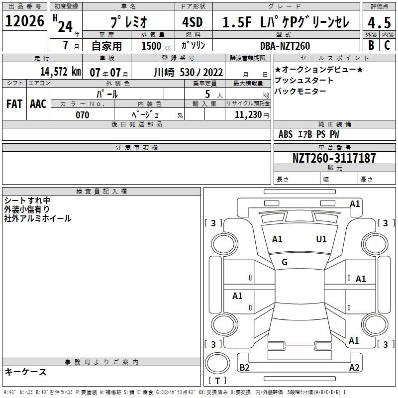 TOYOTA PREMIO - лот 12026