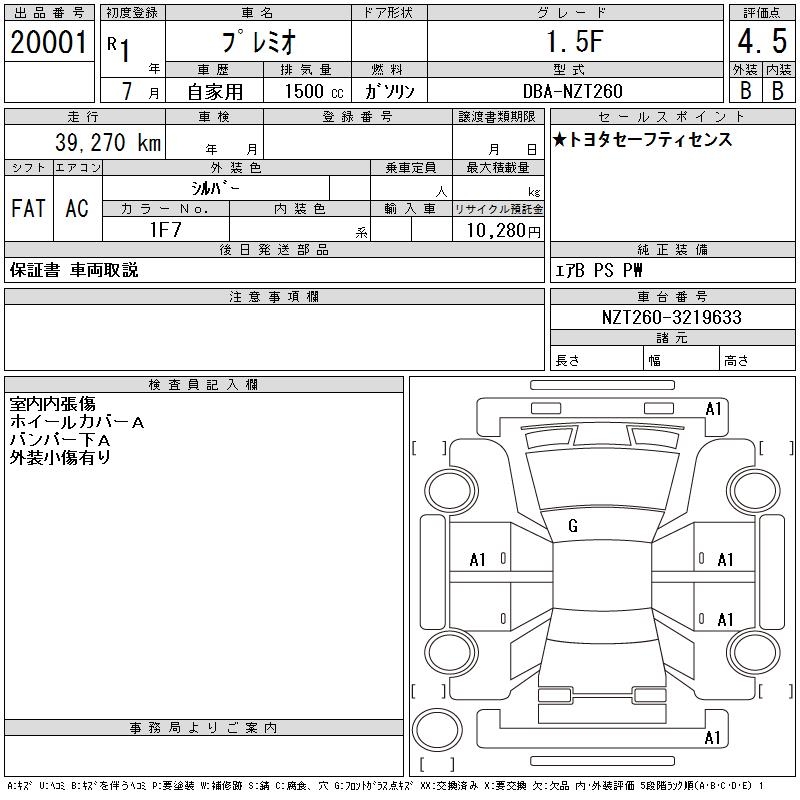 TOYOTA PREMIO - лот 20001