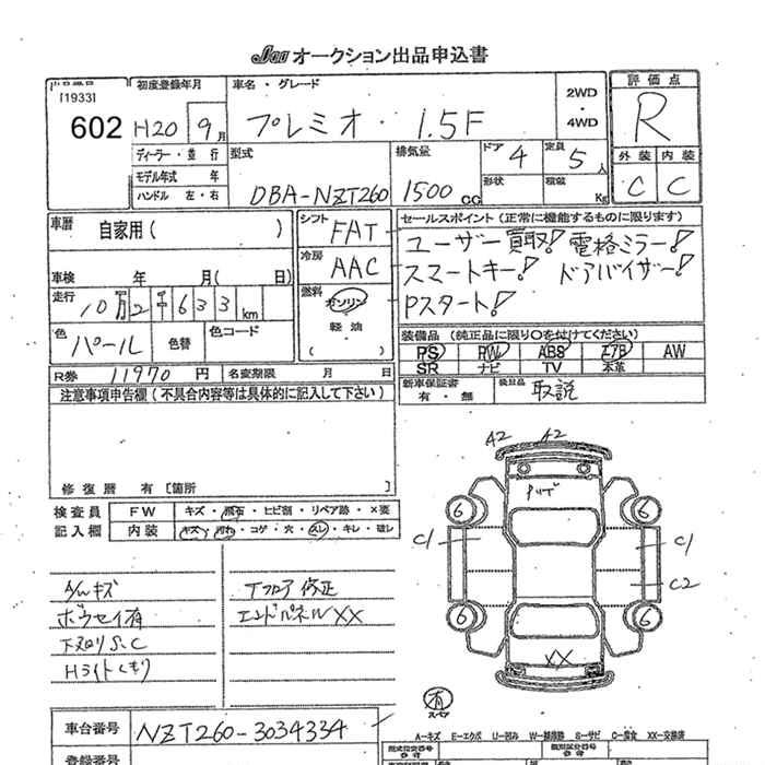 TOYOTA PREMIO - лот 602