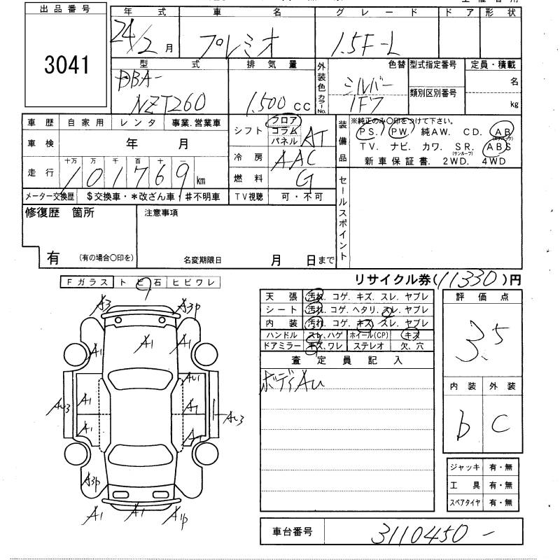 TOYOTA PREMIO - лот 3041