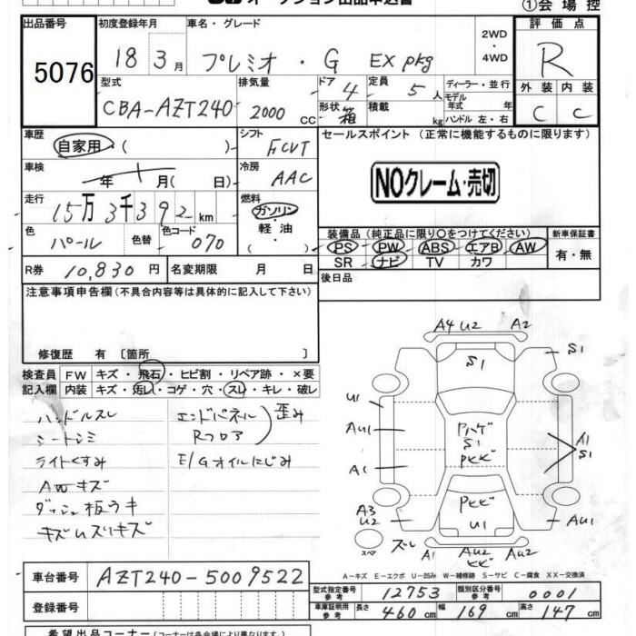 TOYOTA PREMIO - лот 5076