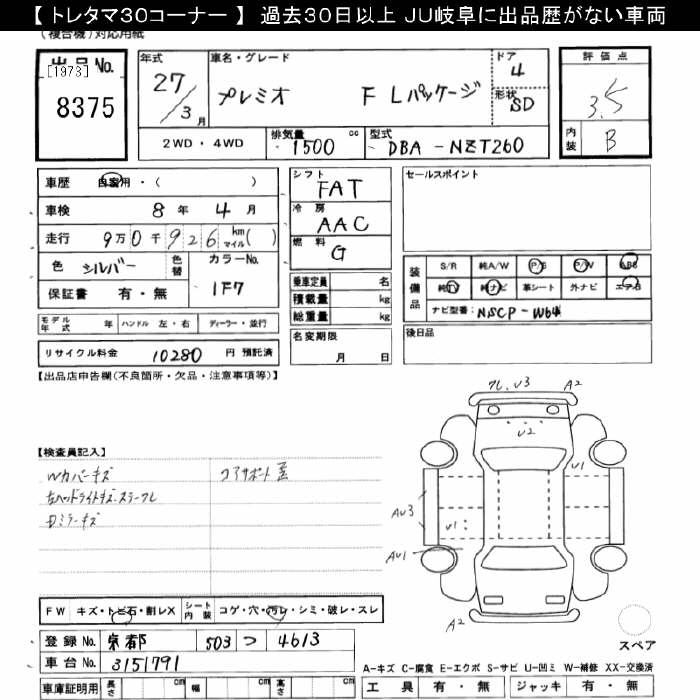 TOYOTA PREMIO - лот 8375