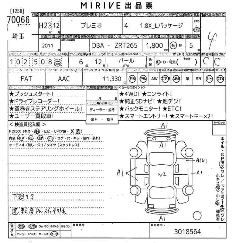 TOYOTA PREMIO - лот 70066