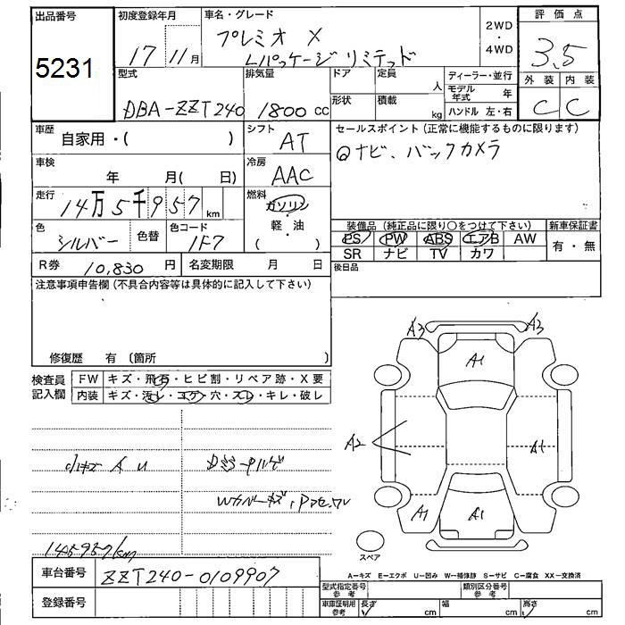 TOYOTA PREMIO - лот 5231