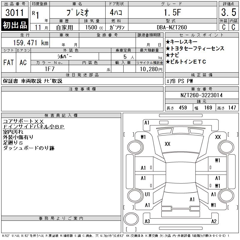 TOYOTA PREMIO - лот 3011