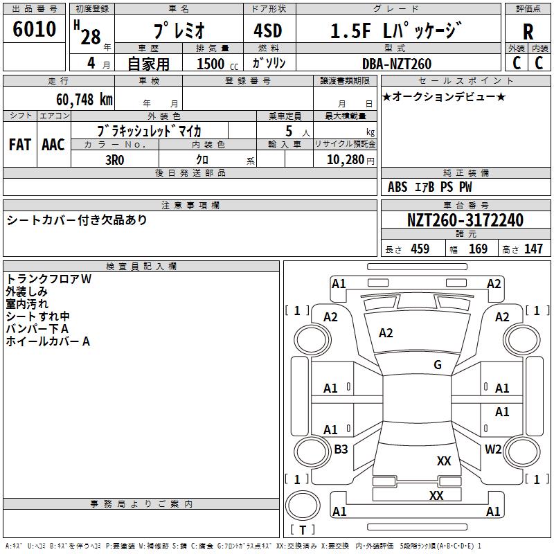 TOYOTA PREMIO - лот 6010