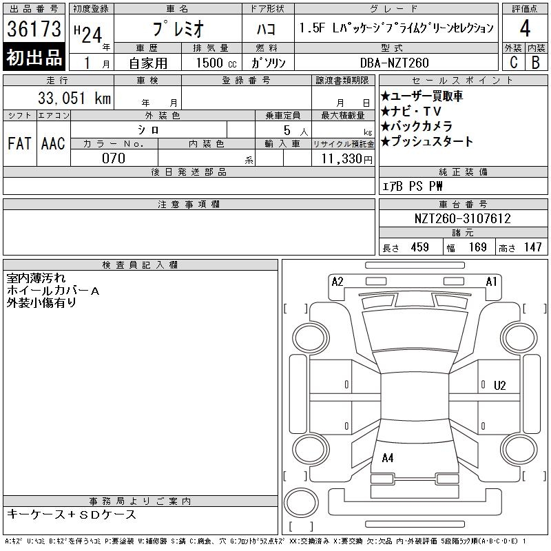 TOYOTA PREMIO - лот 36173